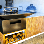 Le plan de travail, le point d’eau, le frigo extérieur et tous les accessoires nécessaires doivent être pensés pour un confort maximal. La personne qui cuisine reste proche des convives. La convivialité est ainsi préservée.
